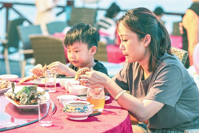游客在東海龍宮海鮮城品嘗海鮮美食。 三亞日報記者 陳聰聰 攝