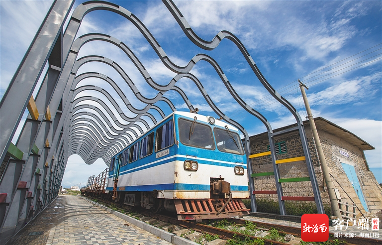 在鶯歌海鹽場,鹽場生產曾經使用的火車成為打卡點。 海南日報記者 武威 攝
