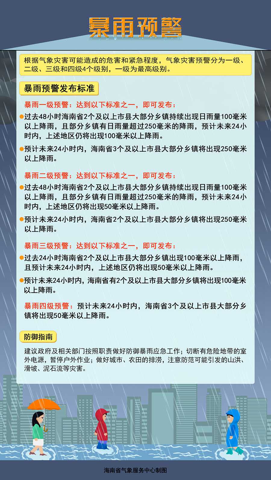 海南島北部,陰天間多云有暴雨,局地大暴雨,最低氣溫24-26℃,最高氣溫28-30℃;中部,陰天間多云有中雨到大雨,局地暴雨,最低氣溫24-26℃,最高氣溫28-30℃;東部,陰天間多云有大到暴雨,局地大暴雨,最低氣溫23-25℃,最高氣溫31-33℃;西部,陰天間多云有中雨到大雨,局地暴雨,最低氣溫23-25℃,最高氣溫29-31℃;南部,陰天間多云有小雨,最低氣溫26-28℃,最高氣溫32-34℃。