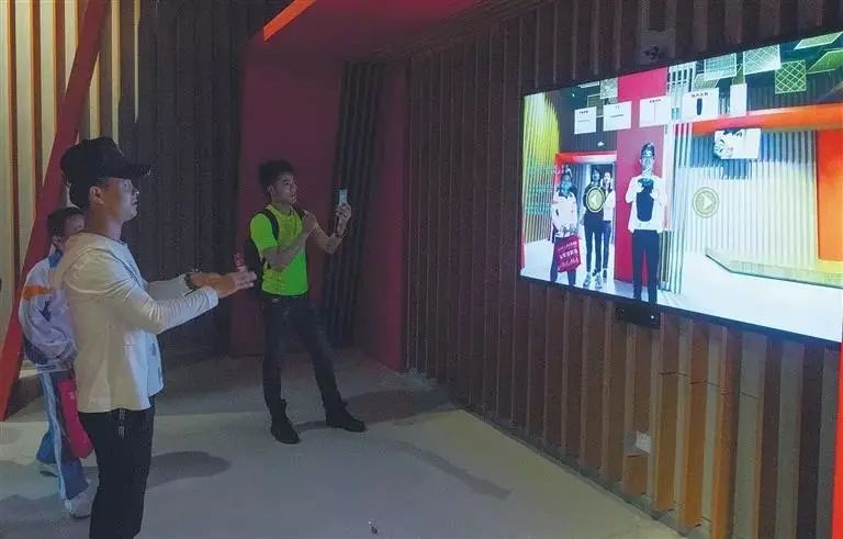 博物館運用現代科技互動手段,分別打造了黎族漢族語言互譯系統、虛擬換衣系統、虛擬竹木樂器體驗系統和虛擬民族服飾制作系統。我們可以通過觸屏的形式,選擇虛擬的民族服飾,并根據自身身高體積自行調整,最后進行“換裝”,并保存其照片。
