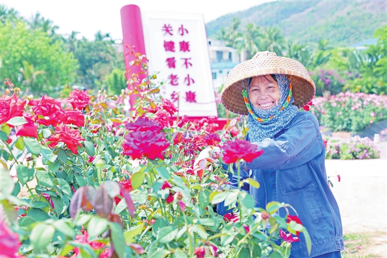 博后村民“斗笠大姐”李玉梅在亞龍灣國(guó)際玫瑰谷實(shí)現(xiàn)了穩(wěn)定就業(yè),日子越過(guò)越紅火。記者 李學(xué)仕 攝