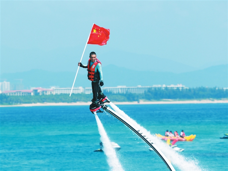 10月1日,三亞蜈支洲島旅游區水上飛龍表演。 三亞日報記者 陳聰聰 攝