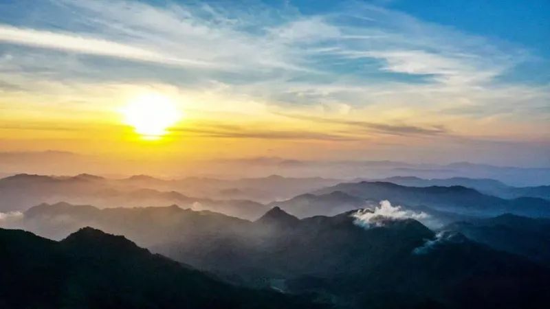在山林中,觀云海看日出。