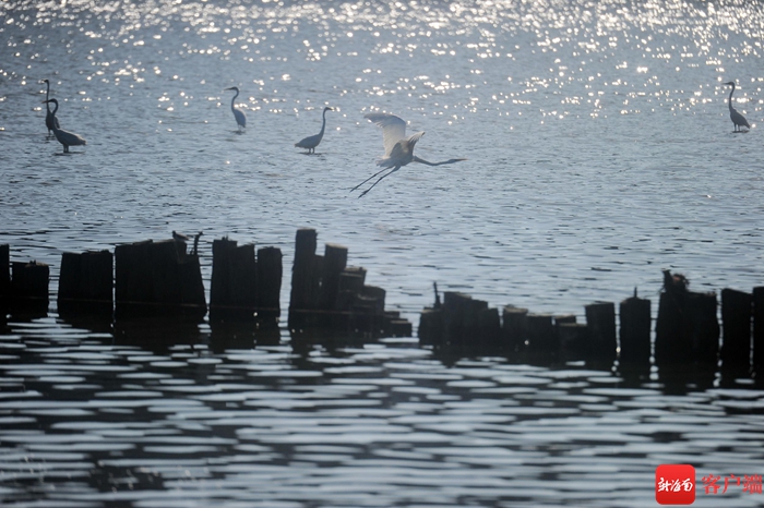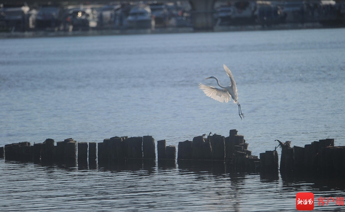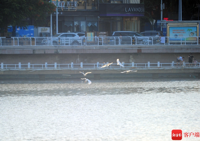 白鷺在三亞河飛舞嬉戲。記者 沙曉峰 攝