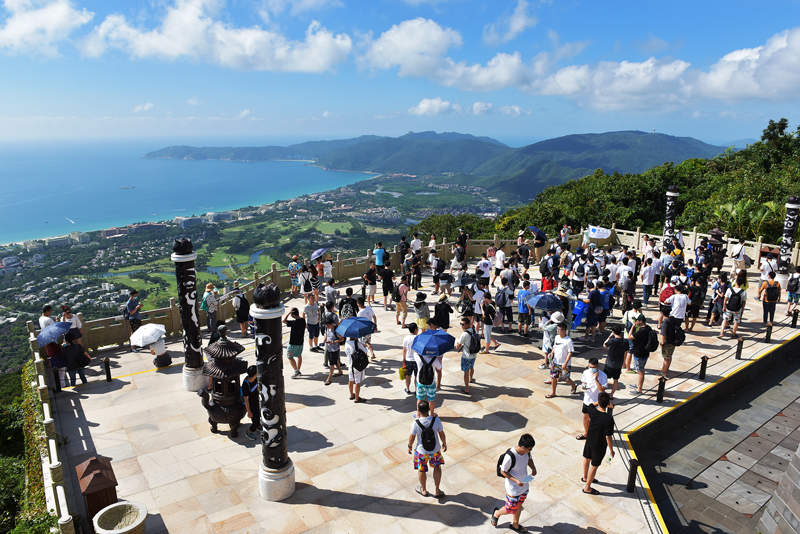 立冬當天正逢周日,亞龍灣熱帶天堂天氣晴好,驕陽似火。三五成群的游客漫步在雨林中賞花觀景,登高望遠,沐浴三亞溫暖的陽光,愉快地在三亞景區旅游度假。在景區中看到,景區熱門景點過江龍索橋、全海景玻璃棧橋及龍雕廣場上人來人往,熙熙攘攘,熱鬧非凡。眾多游客高興地暢游在景區中,樂享海南三亞四季如春的宜人環境。
