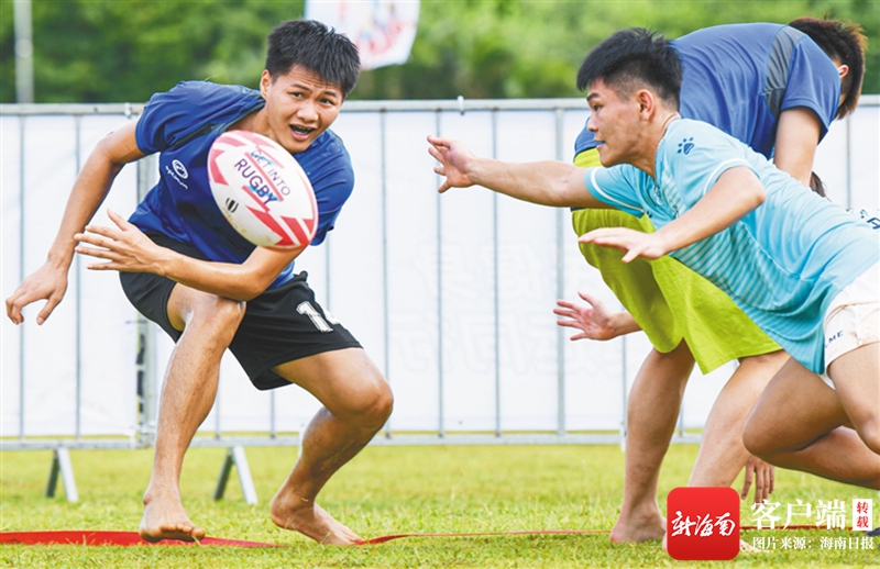 2021年8月29日,第十三屆海南省全民健身運動會群眾比賽橄欖球項目在海口萬綠園舉行。阮琛 攝