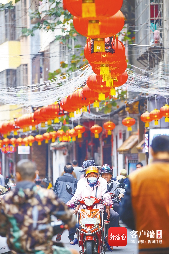 2月13日,元宵節(jié)臨近,海口市府城老街繡衣坊掛滿燈籠和特色花燈,營造出喜慶祥和的節(jié)日氣氛。海南日報記者 張茂 攝