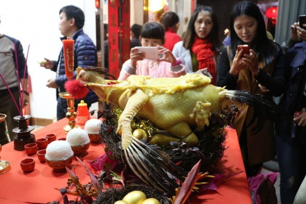 多年來,瓊海博鰲樂城就有元宵節(jié)舉辦肥雞比賽的獨特民俗。即元宵節(jié),在青石磚鋪就的老街兩旁,各家門口都擺出一張八仙桌,桌上擺著一只泛著油光、讓人垂涎欲滴的水煮雞,由村里鄉(xiāng)賢組成的評委會評選出奪魁肥雞。肥雞嘴里叼著鮮花,脖子掛著項鏈,象征美好生活。誰家的雞最肥,說明誰家會養(yǎng)雞,也是最勤勞的象征,自然會得到鄉(xiāng)親尊敬。