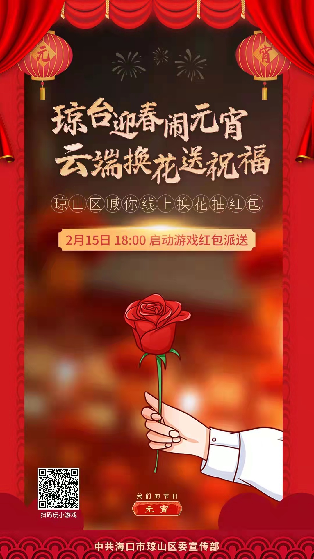 府城元宵換花節(jié)是民間自發(fā)形成的傳統(tǒng)民俗活動,歷年都會吸引大批游人來到府城地區(qū)賞花燈、換花、鬧元宵。在當前新冠肺炎疫情防控工作依然不能松懈的情況下,瓊山區(qū)將在元宵節(jié)當天推出線上換花搶紅包小游戲、瓊山文化過大年之網(wǎng)上來換花等線上活動,將線下的換花民俗傳向“云端”,引導廣大市民游客線下不聚集、線上賞民俗,歡樂鬧元宵,營造濃厚的節(jié)慶氛圍。
