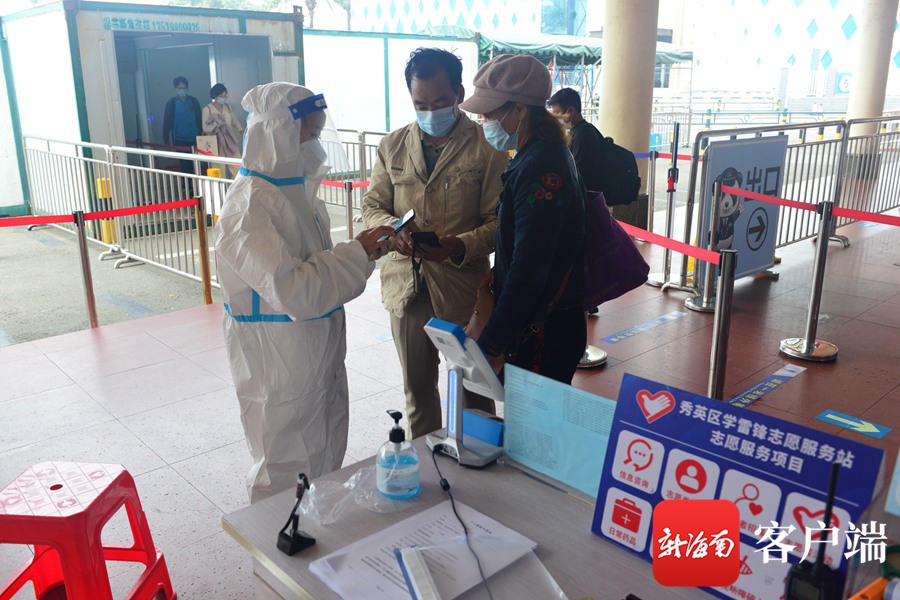 有三亞旅居史旅客在錄入信息。記者 陳衛(wèi)東攝