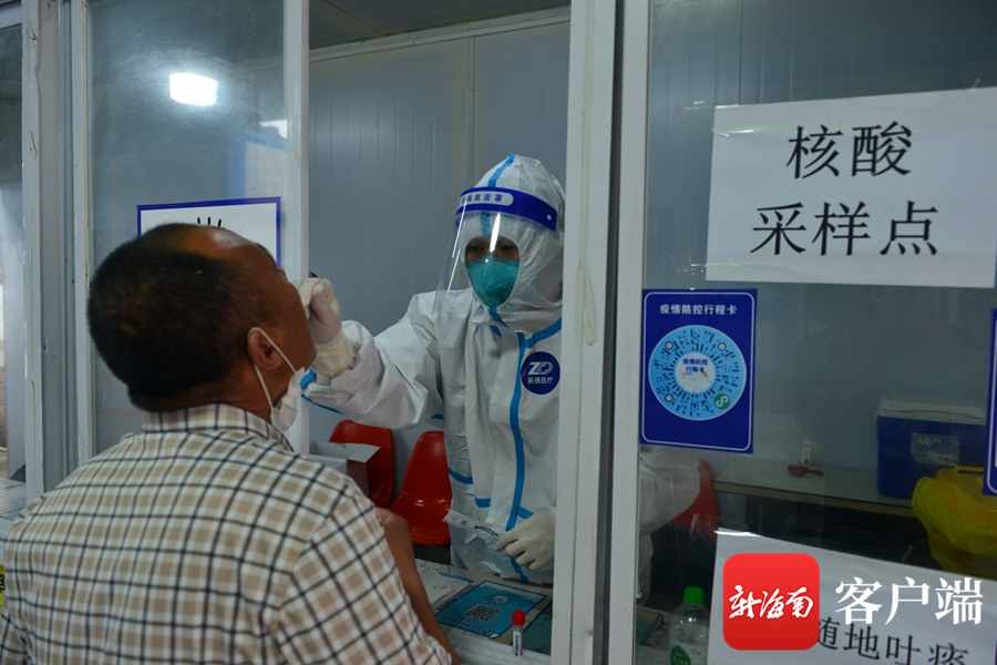 有三亞旅居史旅客在取樣。記者 陳衛(wèi)東攝