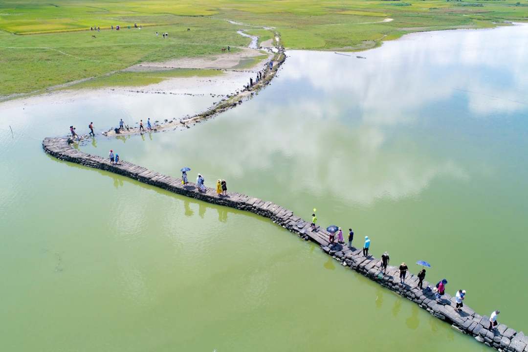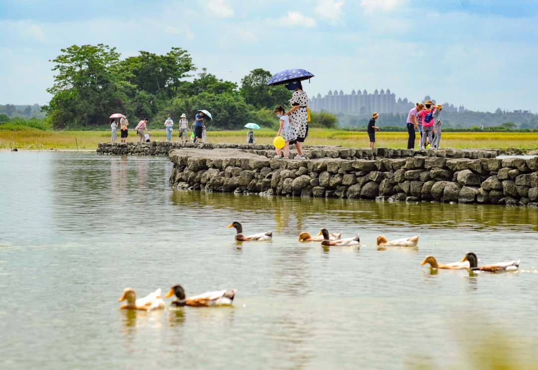 “蛇橋”距今已有500多年的歷史了,水大時則隱,水淺時則顯,村民通過“蛇橋”即可到對面田洋勞作,當(dāng)河水上漲漫過石橋時,河岸就成了臨時渡口,人們可在此泛舟往來。春來“蛇橋”露真容,這一奇景一年僅持續(xù)約5個月,眾多游客慕名而來。