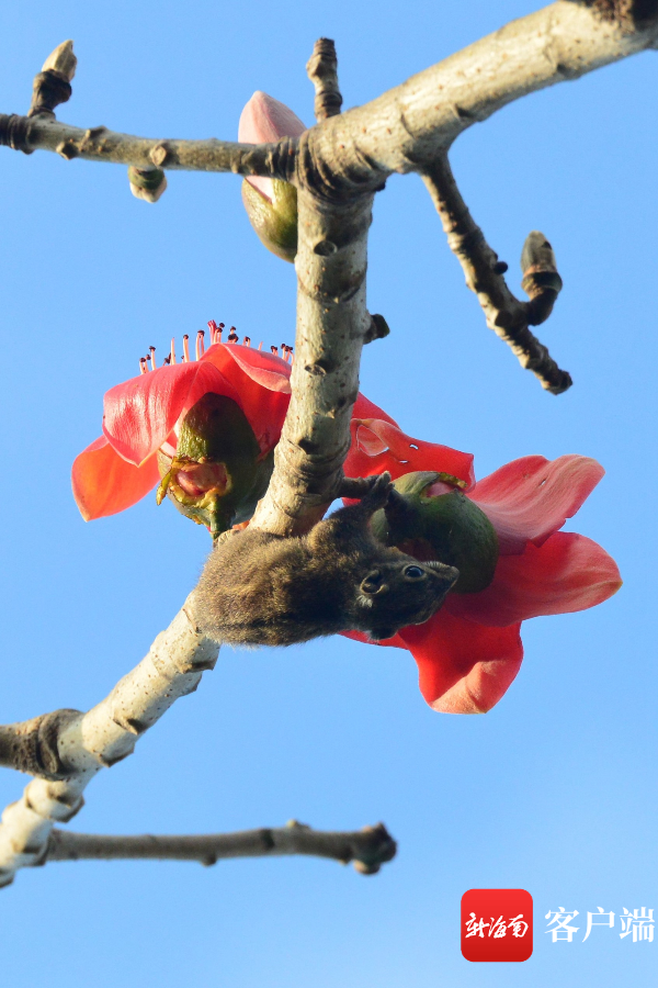 木棉樹上的小松鼠。記者 陳衛(wèi)東攝