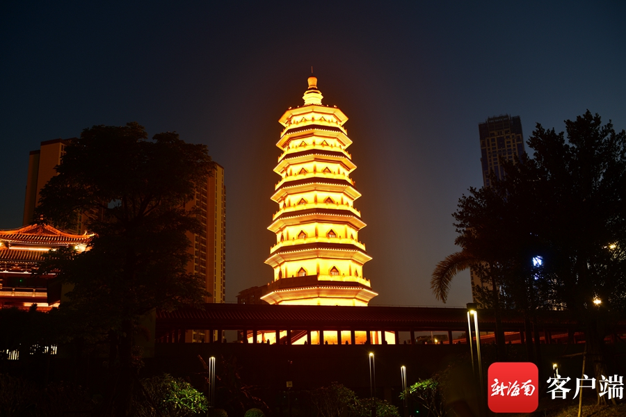 新海南客戶端、南海網、南國都市報4月10日消息 (記者 陳衛東)4月9日晚,記者拍到海口明昌塔亮燈后美輪美奐的景觀,這座曾被譽為“瓊州第一塔”的明昌塔流光溢彩,為海口又增添一個網紅打卡地。