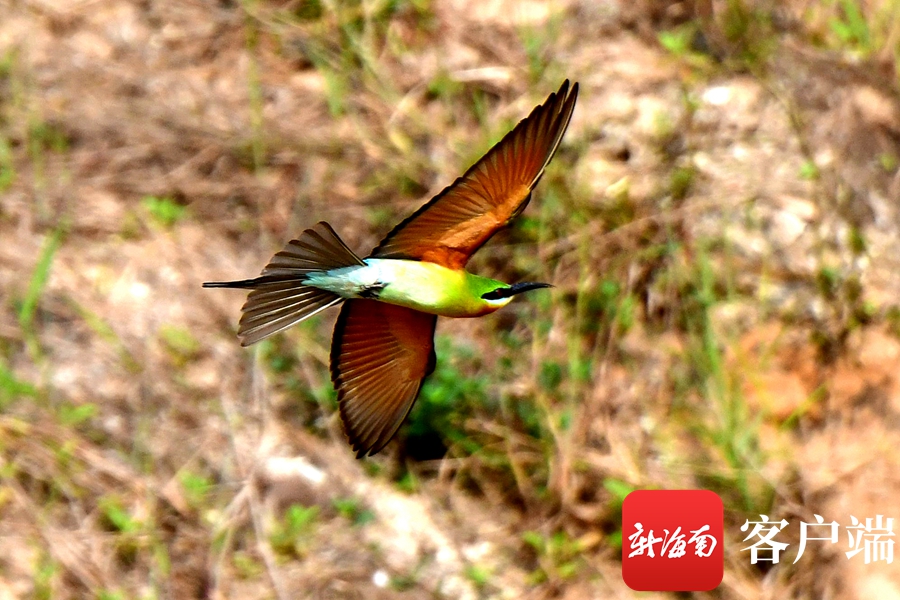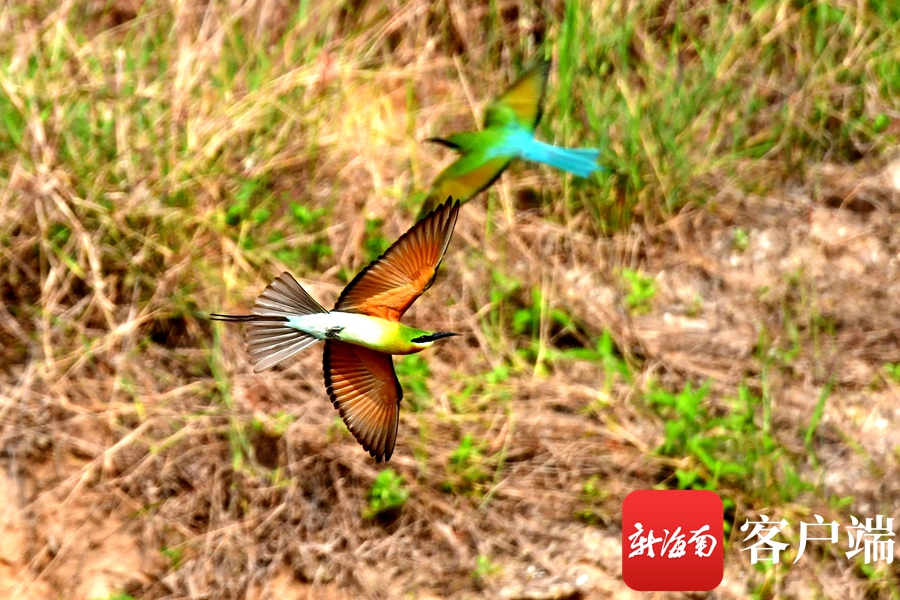 3月中旬,大批蜂虎飛臨海口,選擇在此筑巢安家,為了拍攝到蜂虎精彩美麗的瞬間,攝影師們抗著“長槍短炮”來此蹲守拍攝。有的一拍就是一整天,中午,周邊沒有吃飯地方,他們就自帶“干糧”。