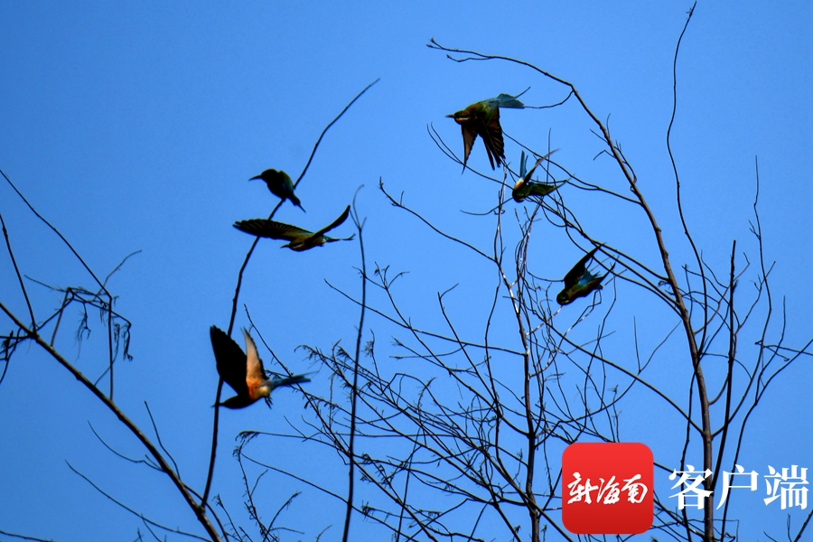 樹上棲息的蜂虎。記者 陳衛東 攝
