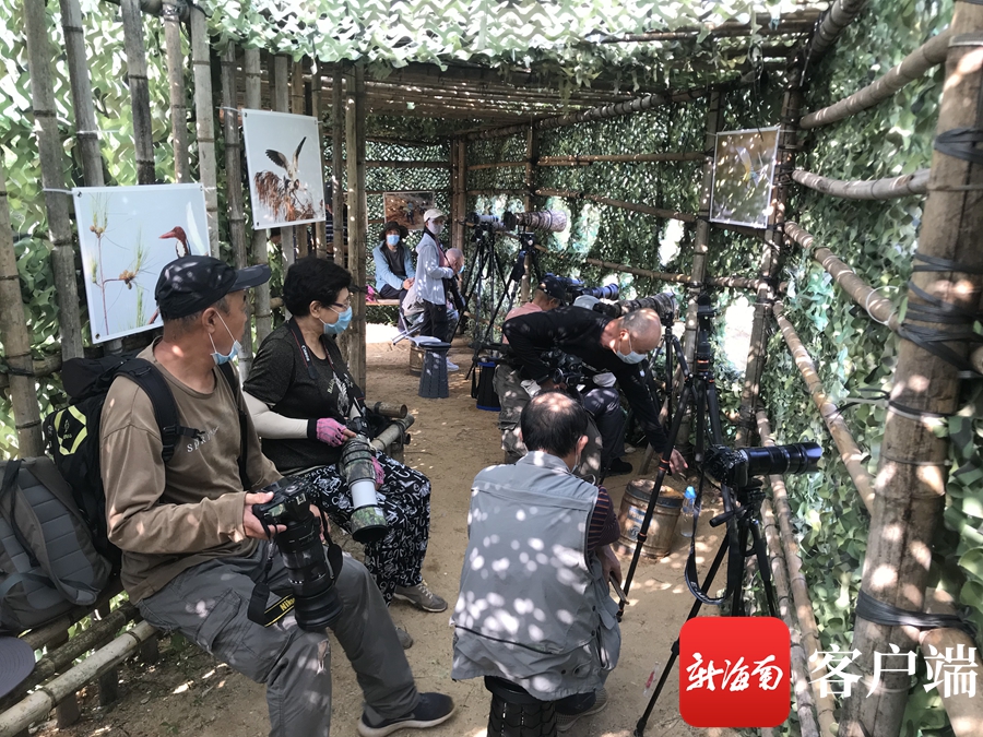 據了解,這些攝影師來自全國各地,也有本地攝影愛好者參與。他們中有資深拍鳥達人,全套裝備二三十萬,也有剛入行的小白,拍攝間隙,公園專門搭建的觀鳥攝影棚里就是他們交流學習的好時機。
