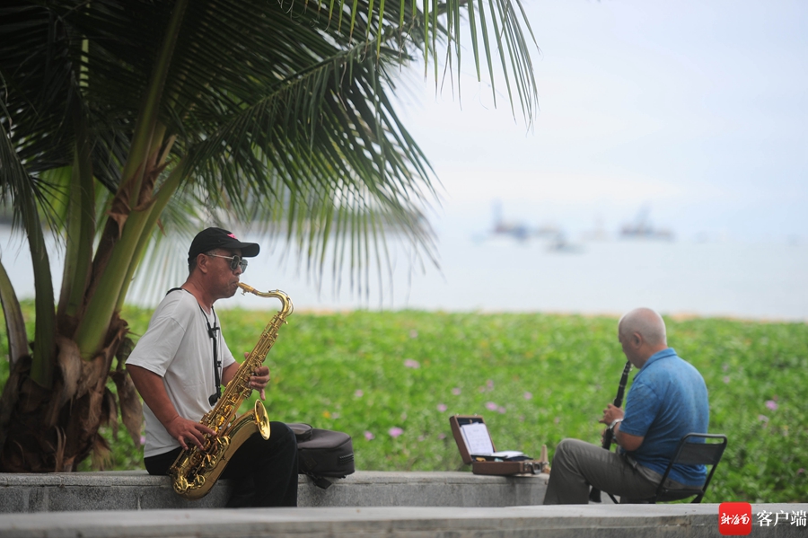5月3日,老人在海灘上練習(xí)樂(lè)器。記者 沙曉峰 攝