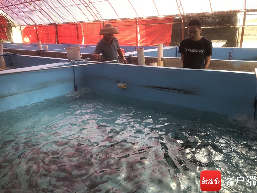 邢增苗到養(yǎng)殖池查看魚苗生長(zhǎng)情況。記者 蘇桂除 攝