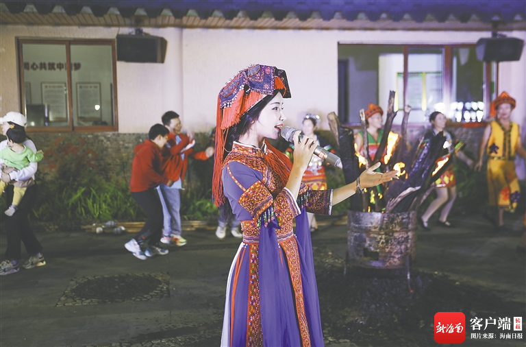 在五指山水滿鄉(xiāng)毛納村,苗族歌手受邀為游客獻唱。方山 攝
