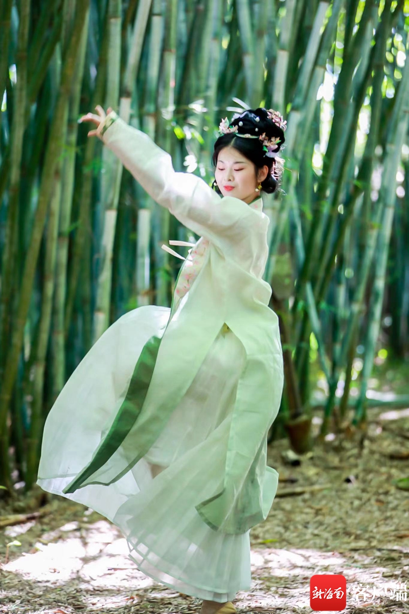 屯昌端午廟會活動的主題為“竹林霓裳 國風盛宴”,主要突出非遺傳承、民俗文化、國潮元素三個特點。為給廟會增添更豐富的看點,現場特別安排了漢舞表演、民樂表演、漢服走秀、國學誦讀等文藝匯演節目,引得大批市民游客駐足觀看。