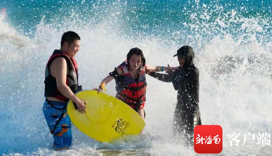 2021年8月11日,游客在三亞后海沖浪。記者 沙曉峰攝
