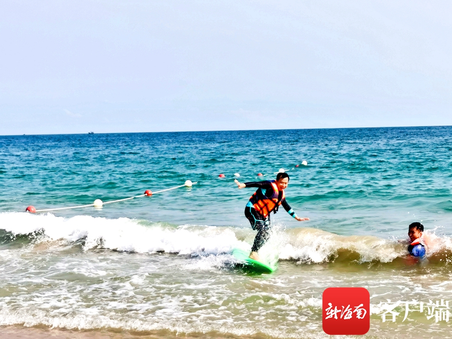 萬(wàn)寧日月灣,市民游客享受沖浪樂(lè)趣。記者 張野 攝