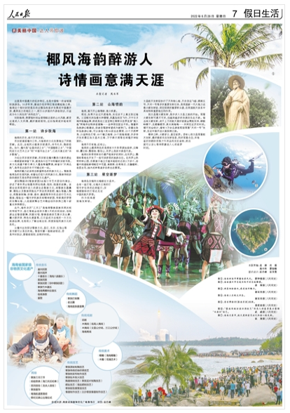 編者按:6月26日,人民日報刊發整版文章《椰風海韻醉游人 詩情畫意滿天涯》帶你暢游海南,版面圖及全文如下↓↓