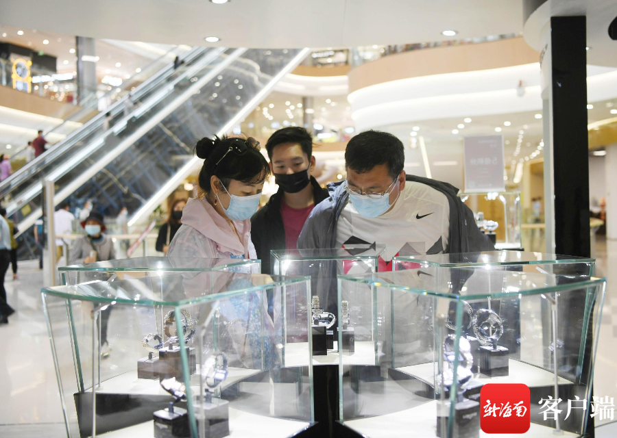 游人在三亞海旅免稅城購物免稅產品。記者 沙曉峰攝