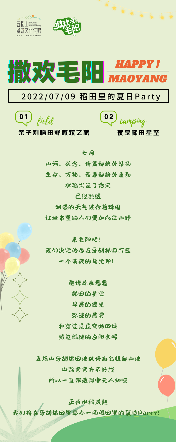 “稻田里的夏日Party”——這周六還不組隊來五指山毛陽露營撒歡?