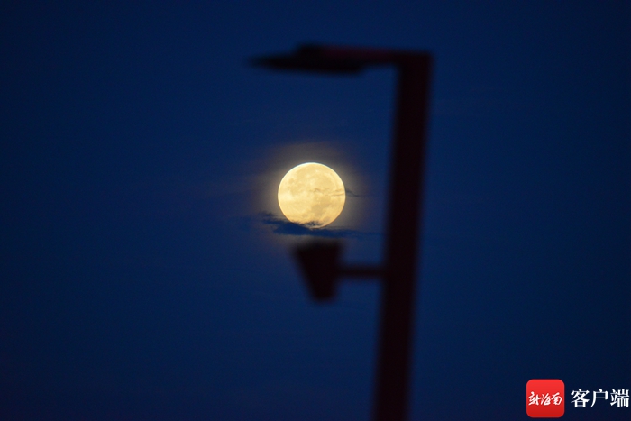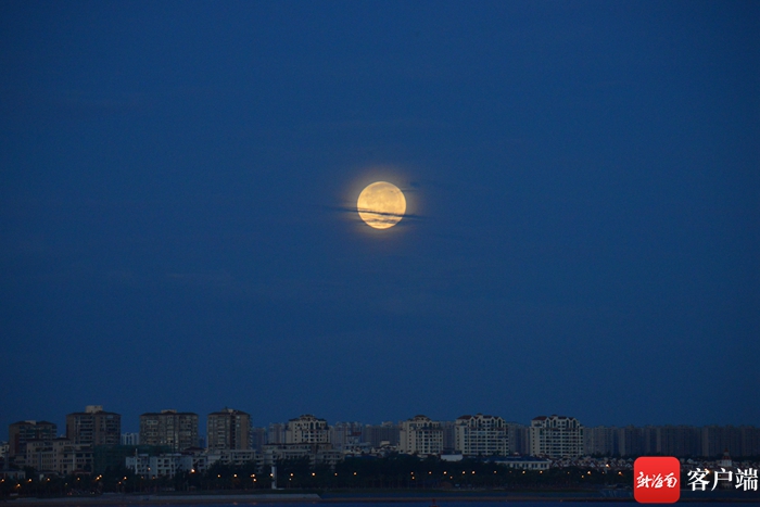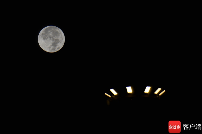 13日晚,海口天空上的超級月亮。記者 陳衛東 攝