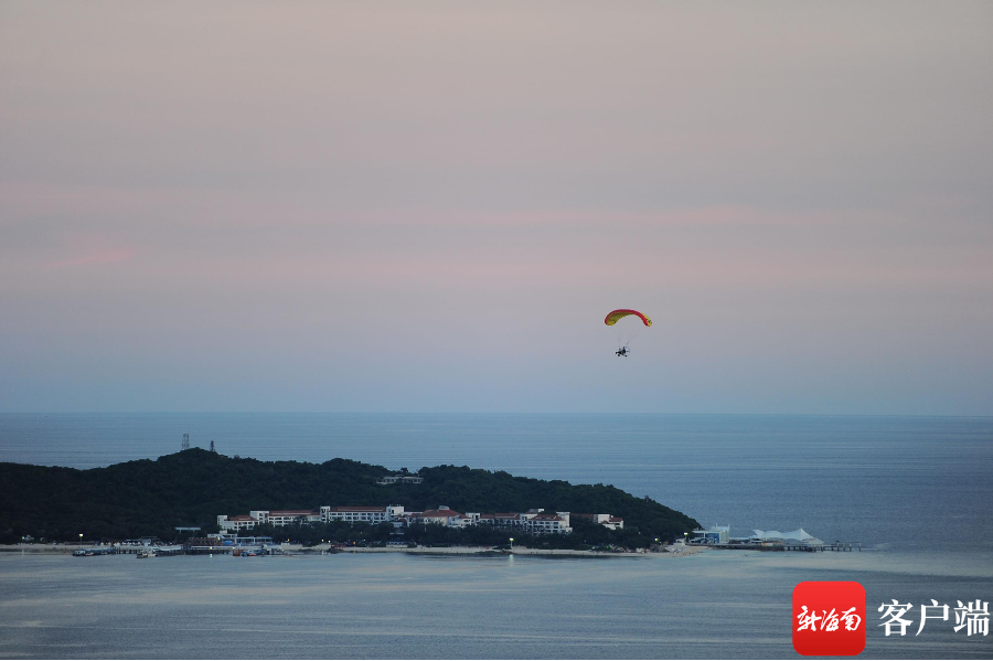 7月26日, 游客乘坐動(dòng)力滑翔傘飛越蜈支洲島海域。記者沙曉峰攝