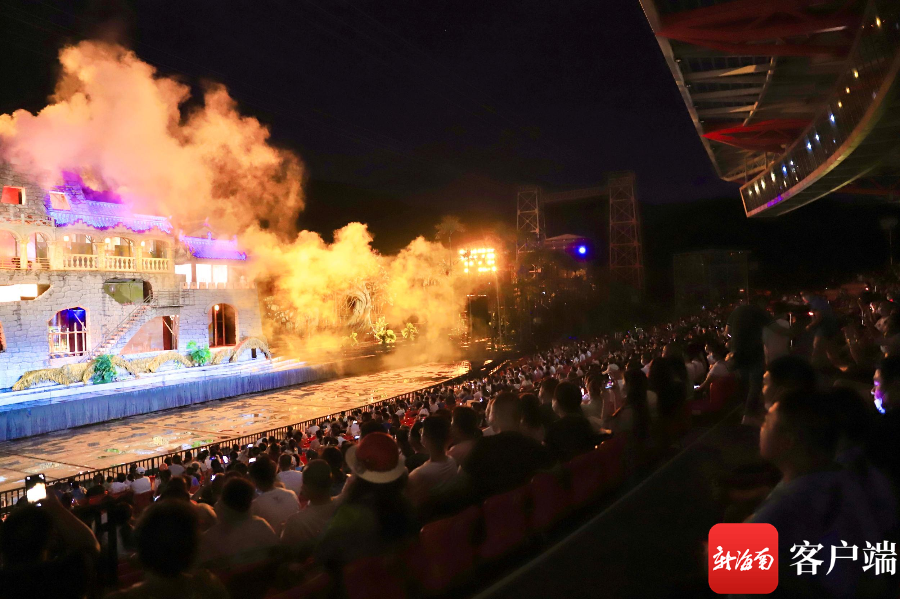 游客在三亞紅色娘子軍演藝公園觀看演出。通訊員李嘉嫻攝