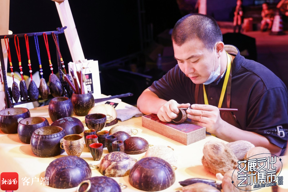 在中心舞臺區(qū)兩側(cè),原創(chuàng)手工藝品區(qū)的創(chuàng)意手作精品琳瑯滿目,令人愛不釋手;在民俗創(chuàng)新區(qū),黎錦、黎陶、彩雕等工藝品引人注目,同時現(xiàn)場還邀請了非遺傳承人進行非遺產(chǎn)品展示與技藝講解,為市民游客帶來一場“非遺文化產(chǎn)品博覽會”。
