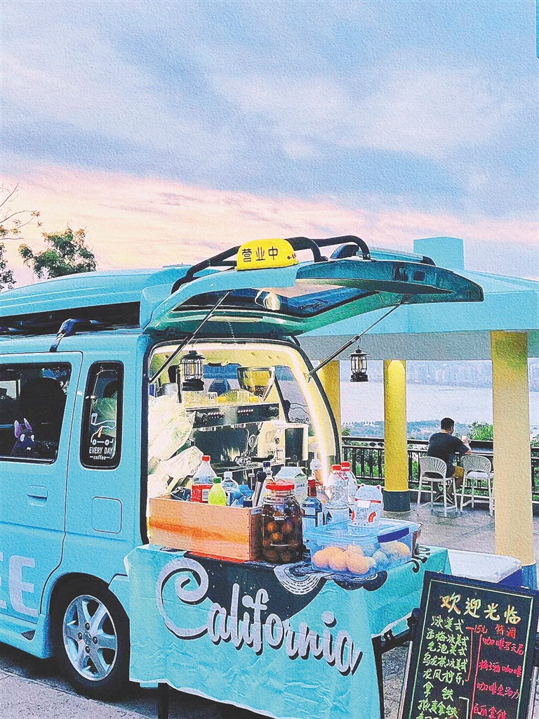 把咖啡店“裝”進汽車后備箱里。海南日報記者 李艷玫 攝