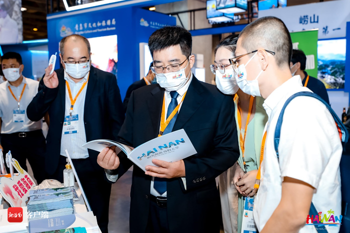 省旅文廳廳長李輝衛查看海南旅游宣傳物料。省旅文廳供圖