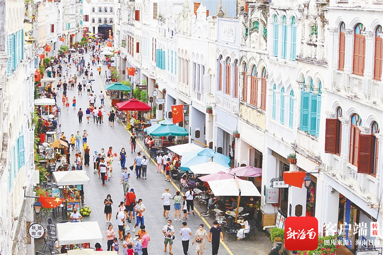 10月1日,市民游客“打卡”海口中山路騎樓老街。海南日報記者 張茂 攝