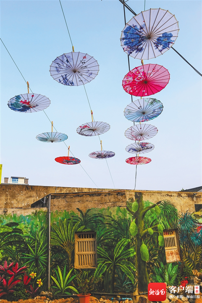 陽光下,幾只藍黃色鸚鵡“交頭接耳”,萌態十足的松鼠正“啃”著玉米……這是海口898藝術村的房屋墻體上,所展現出的一幅幅栩栩如生的畫面。漫步在村中小道,椰子樹、三角梅等極具特色的海南元素,都化身為一幅幅畫作“爬”上了老房子的外墻,吸引著市民游客紛紛駐足拍照,也盤活了這座歷經百年滄桑的古村落。