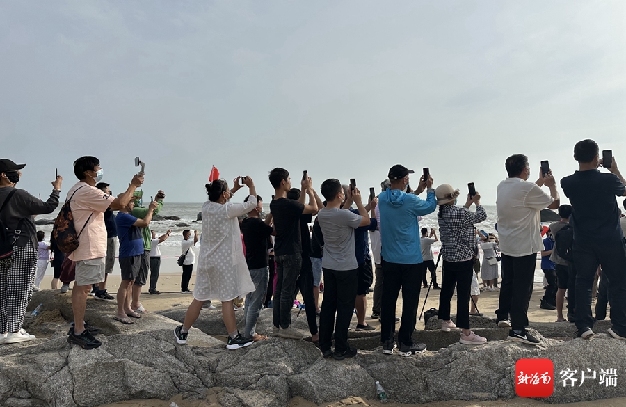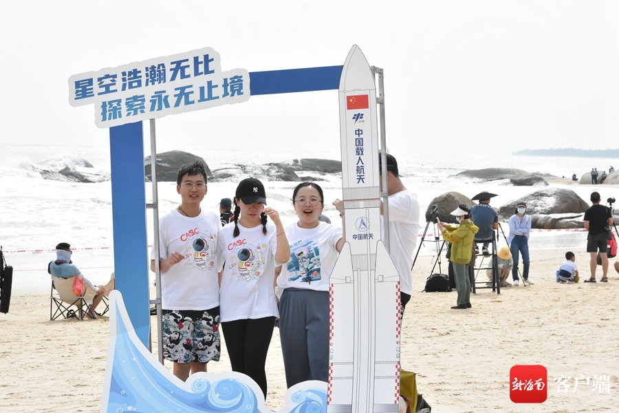 記者在淇水灣看到,航天愛好者與廣大市民游客早早就在海灘上等候火箭升空,為能有最佳的觀看體驗感,他們都拿著各式各樣的“裝備”,揮舞著五星紅旗,共同見證火箭發射精彩瞬間。