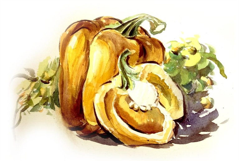 海南辣椒的常見(jiàn)品種:黃燈籠椒、朝天椒、泡椒、甜椒、尖椒、海南黃燈籠椒。吳源 繪