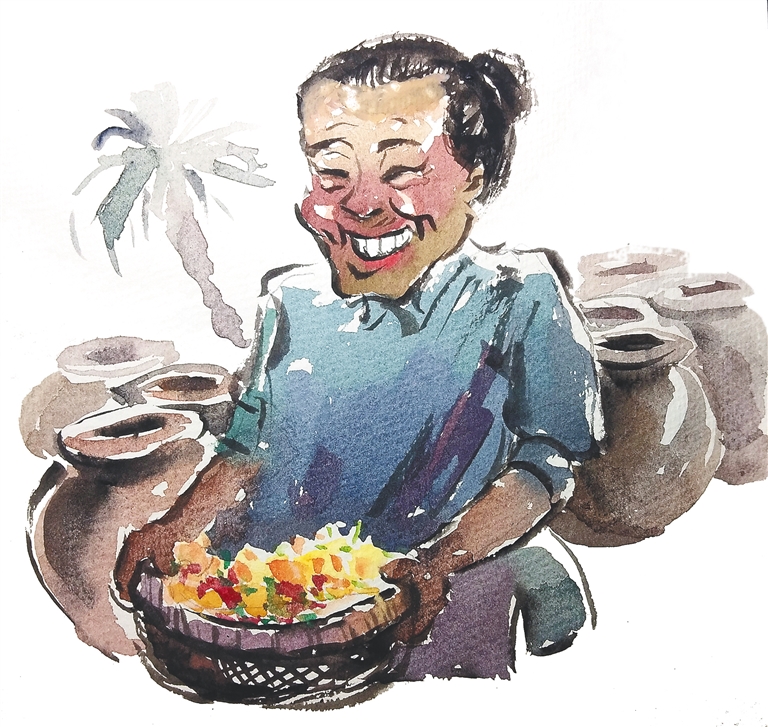 玻璃瓶,紅蓋頭,鮮紅的小米椒被塞得滿滿當(dāng)當(dāng),與清水一同靜待時(shí)間的發(fā)酵。這樣一罐罐的泡辣椒,成了許多海南人家中常備的調(diào)味料之一。上桌前,夾出幾顆泡椒放入醬油味碟中,再用筷子輕戳幾下,擠出辣汁,咸辣鮮美,幾乎可蘸萬(wàn)物。