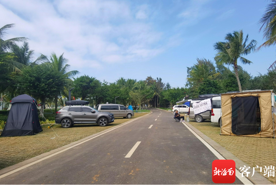 ?西海岸停放著大量的來海南游玩的房車族。記者 汪承賢 攝