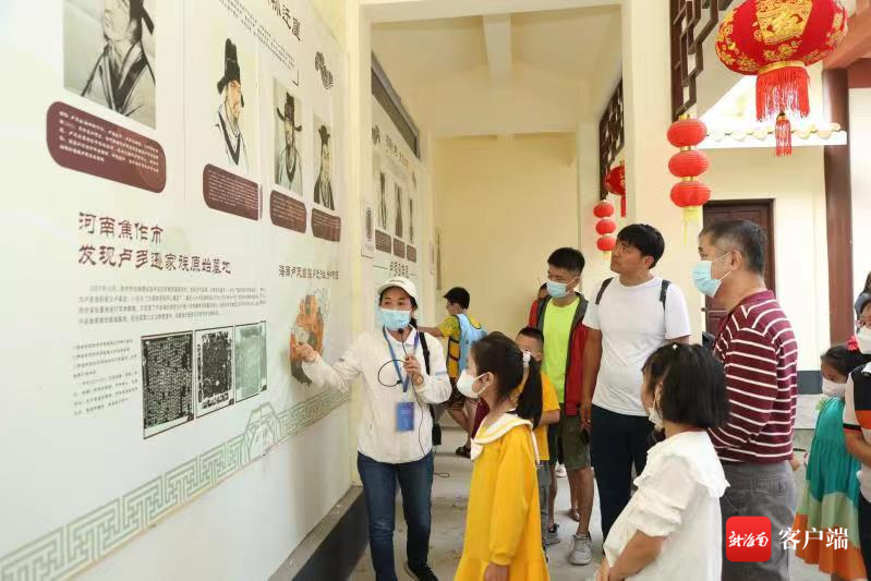 “宋初著名政治家和文學家的盧多遜輔佐宋太祖、宋太宗兩朝歷二十九年,忠心事國慘遭政敵構陷,不幸流放,寓居崖州水南村的盧多遜題詠兩首《水南村》,大家跟我來一起讀:珠崖風景水南村,山下人家林下門......”活動中,講解人員從歷史古跡背后的故事、建筑風格進行介紹,帶領孩子們走進古人的生活場景,并不時提問讓孩子思考,孩子們的好奇心被完全點燃。