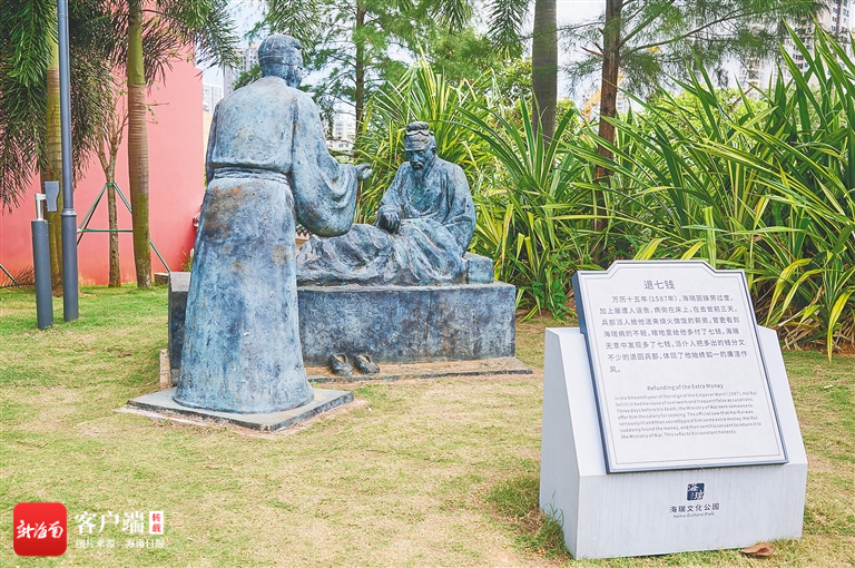 海瑞文化公園內的“退七錢”雕塑。