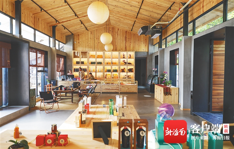 ?瓊中紅毛鎮“山有·食茶飯稻”民宿展銷特色產品。海南日報記者 李天平 攝