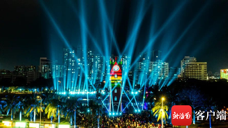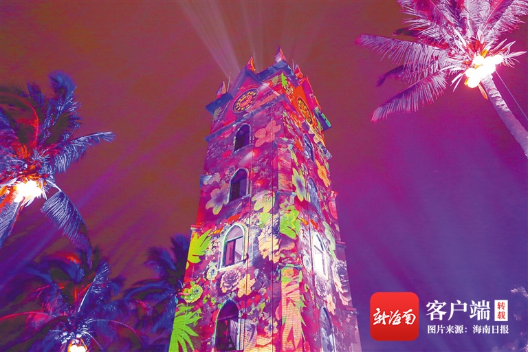 夜幕下的海口鐘樓。海口市旅文局供圖