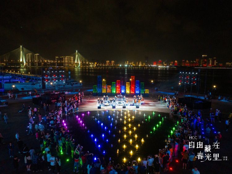 伴著海浪和海風,噴泉隨著音樂律動,或閑情肆意漫步、或約會閑談略飲,華彩·海口灣廣場市集,盡顯濱海城市特色。在這里海風吹拂臉頰,聆聽一曲爵士樂,解鎖閑適的港灣夜生活。
