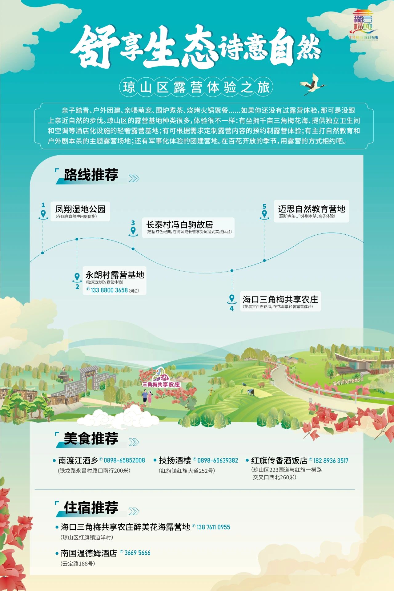 鳳翔濕地公園——永朗村露營基地——長泰村馮白駒故居——海口三角梅共享農莊——邁思自然教育營地