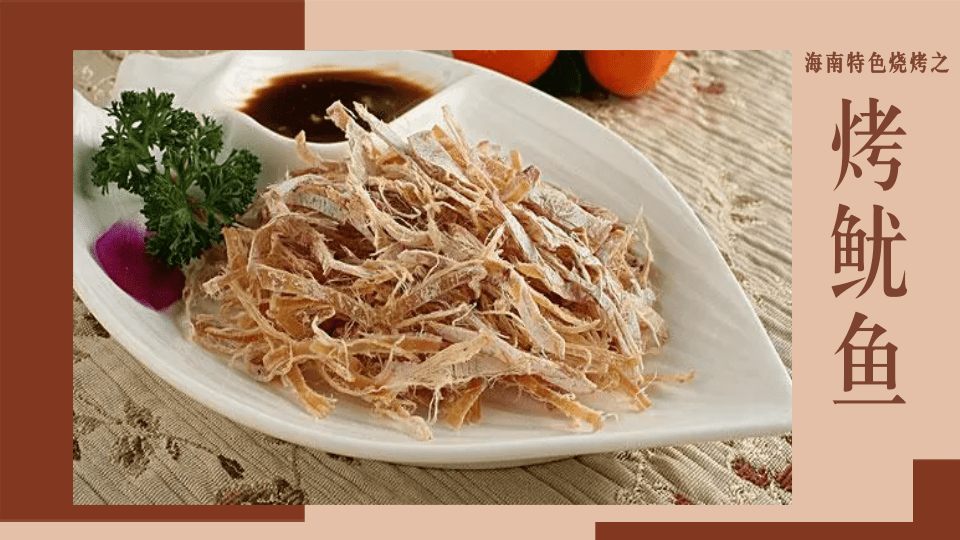 在海南,吃燒烤時點上一只曬干的魷魚,經(jīng)過炭火烤之后,用手撕魷魚,配上醬油和芥末,那叫一個美滋滋。