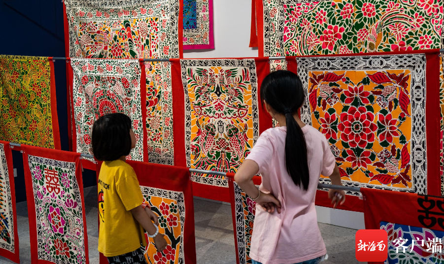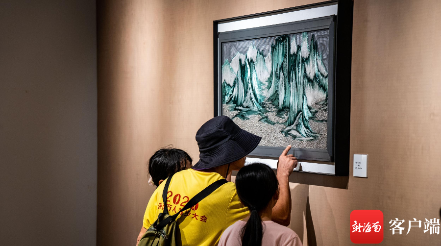 新海南客戶端、南海網、南國都市報5月1日消息(記者 劉孫謀)5月1日,在海南省圖書館,市民參觀2023海南錦繡世界文化周非物質文化遺產傳統織繡印染技藝項目精品展,現場精美的繡品嘆為觀止。